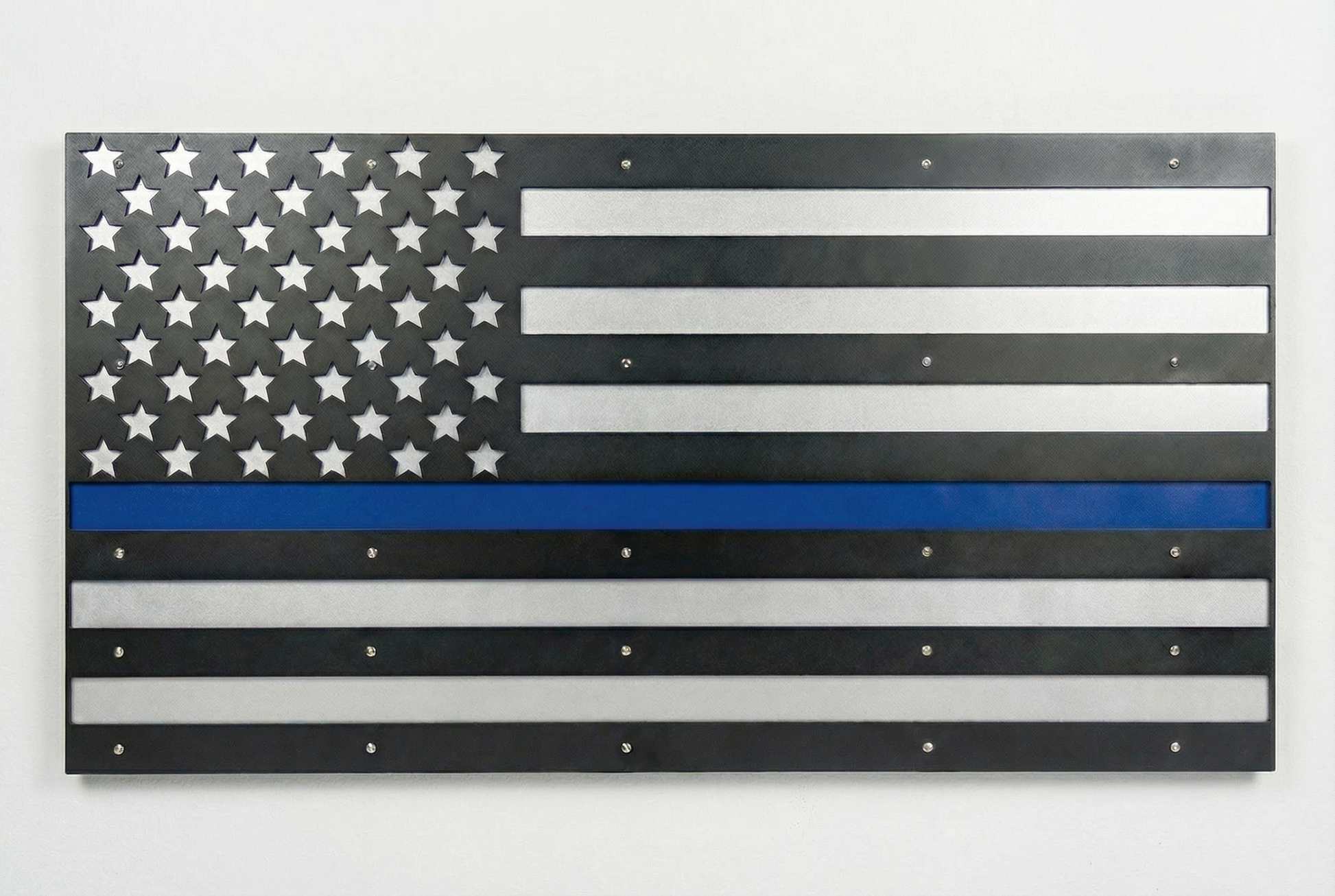 Our Custom Metal American Flag is precision laser-cut from premium steel and a durable finish for a bold, industrial look. Whether you're representing your business, shop, department, or brand — this piece turns your logo into a statement.